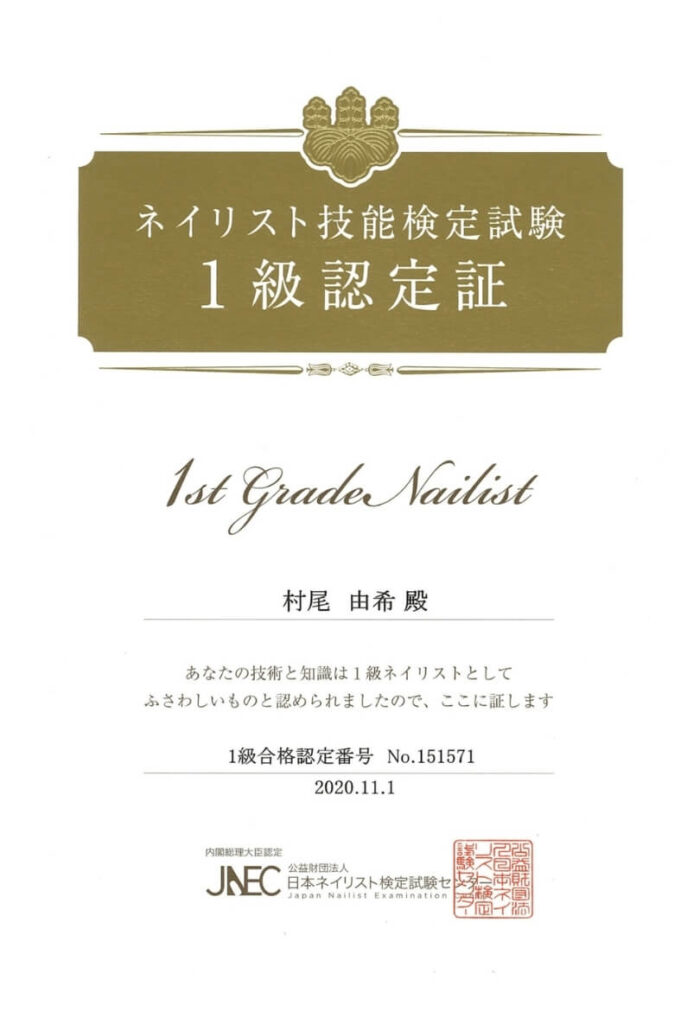 JNECネイリスト技能検定1級