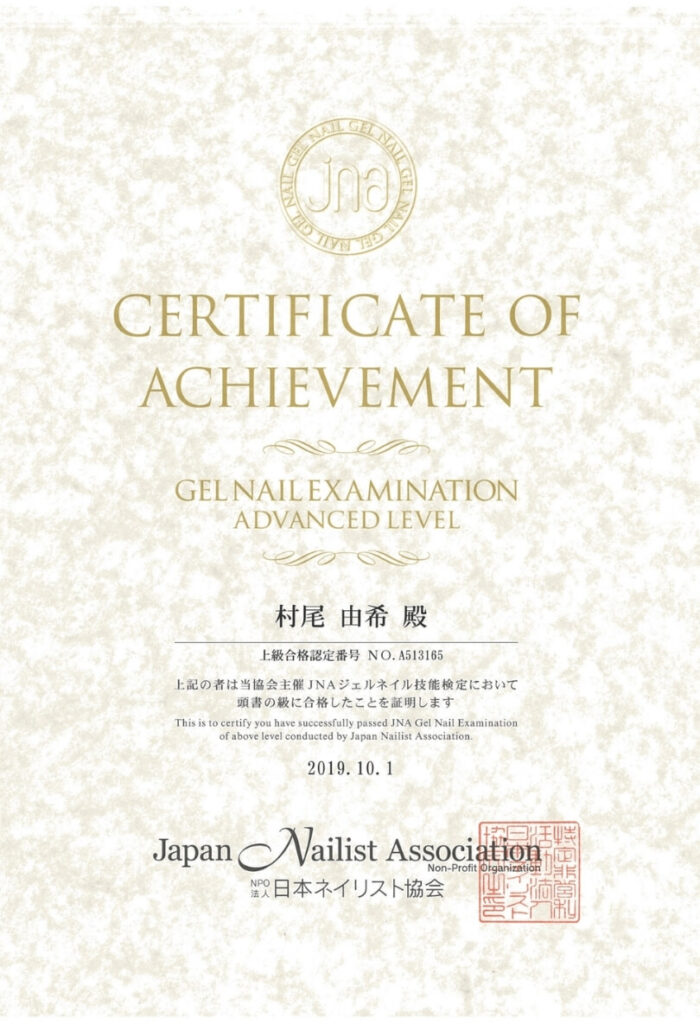 JNAジェルネイル技能検定上級