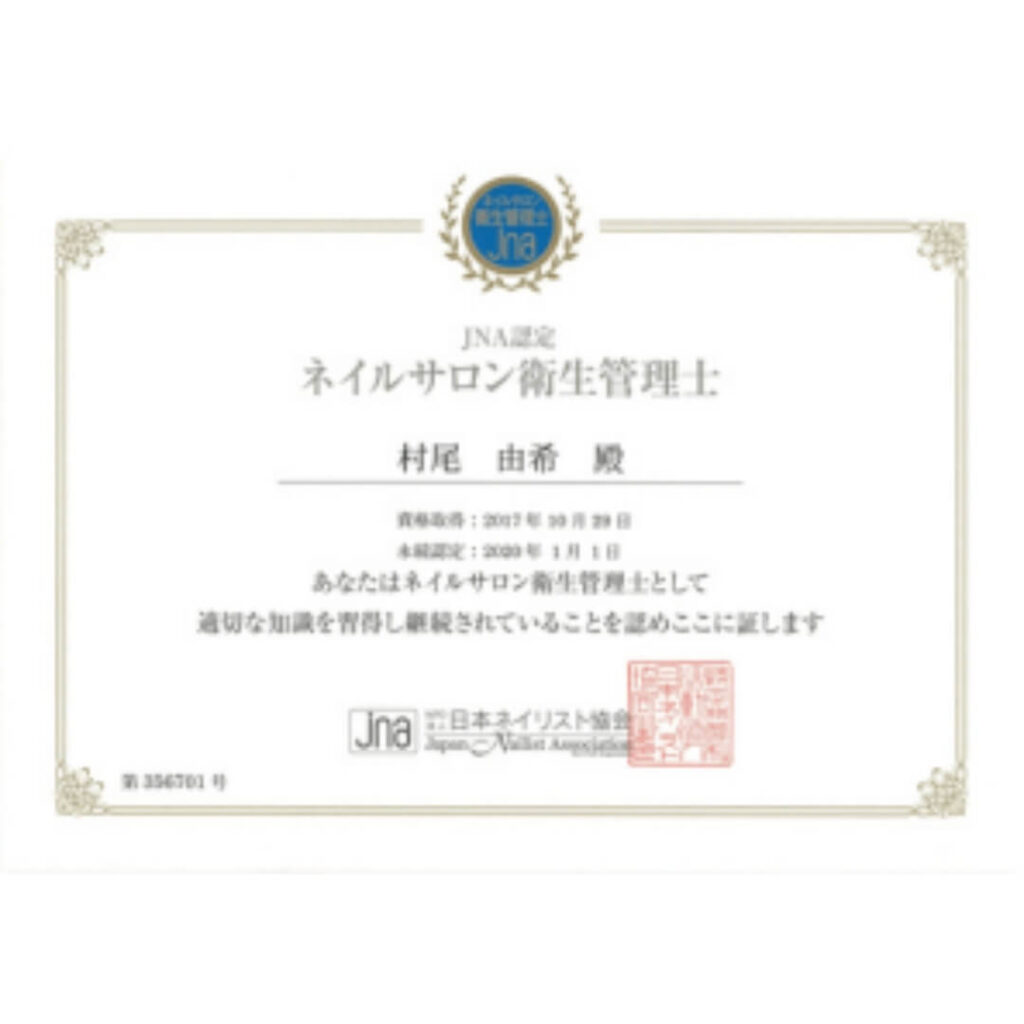 JNA認定ネイルサロン衛生管理士習得